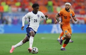 荷兰1比2英格兰 体坛周报特约记者 吴昊宇 沃特金斯绝杀荷兰之后,索斯盖特将梅努替换下场,19岁...