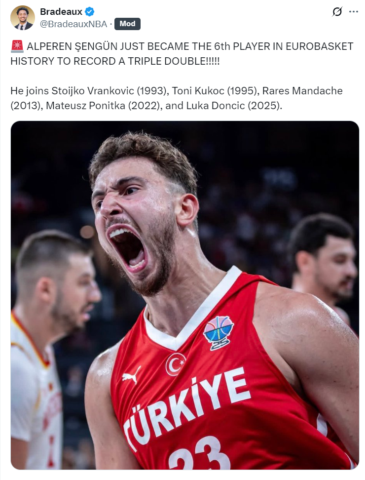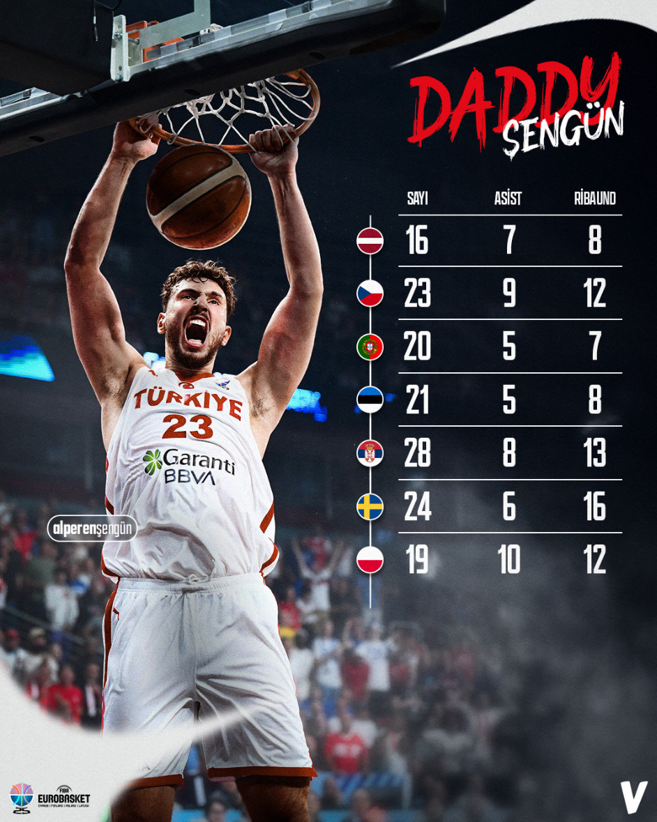 关键是这7场比赛申京带领土耳其全部拿下胜利,目前土耳其7连胜晋级四强,申京也是赛事MVP的第一热门人选。