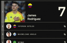9月11日讯 本届南美世预赛结束,Sofascore统计了球员送出助攻的次数,J罗7助居首。本届南美...